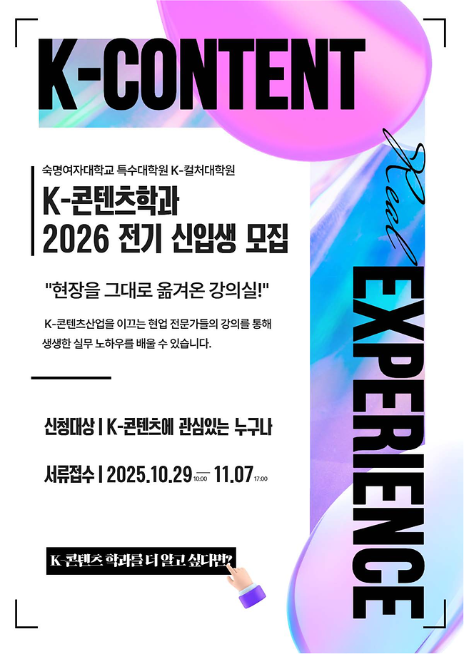 2026-전기 K-콘텐츠학과 신입생 모집 안내