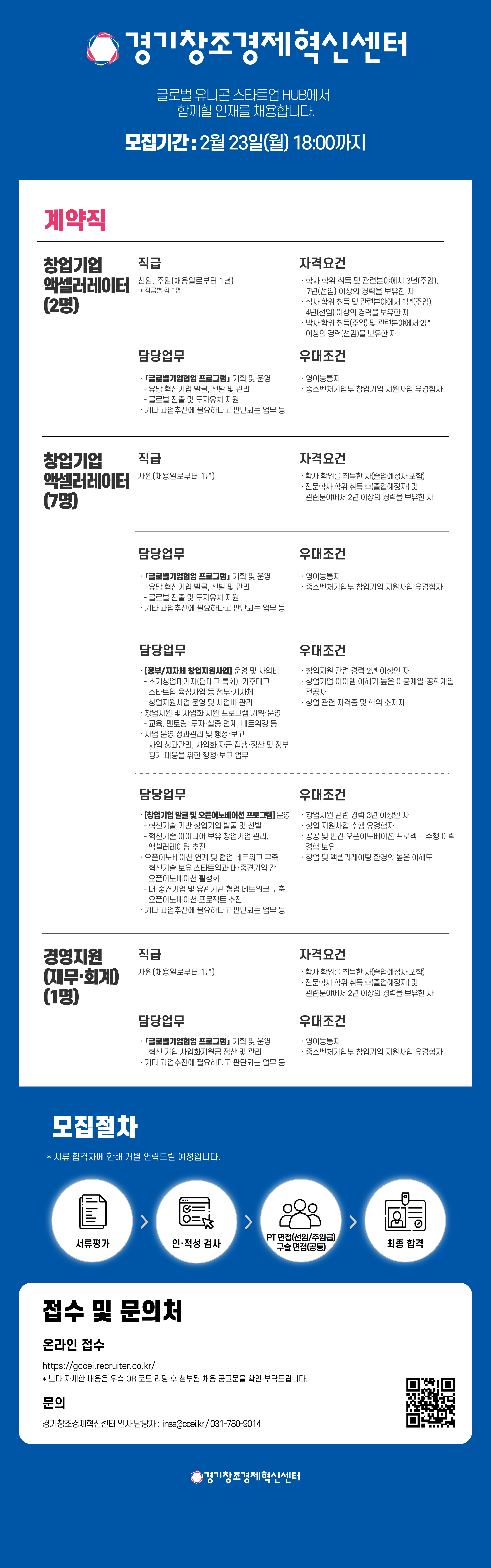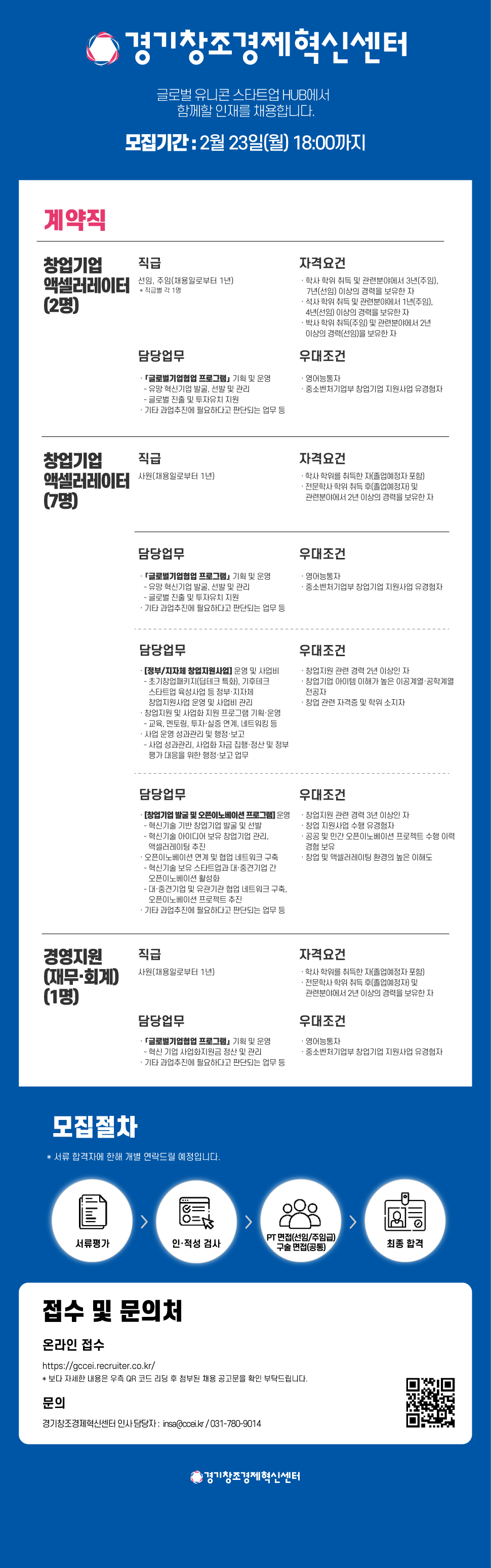 '경기창조경제혁신센터 계약직 직원 채용(신입/경력)'