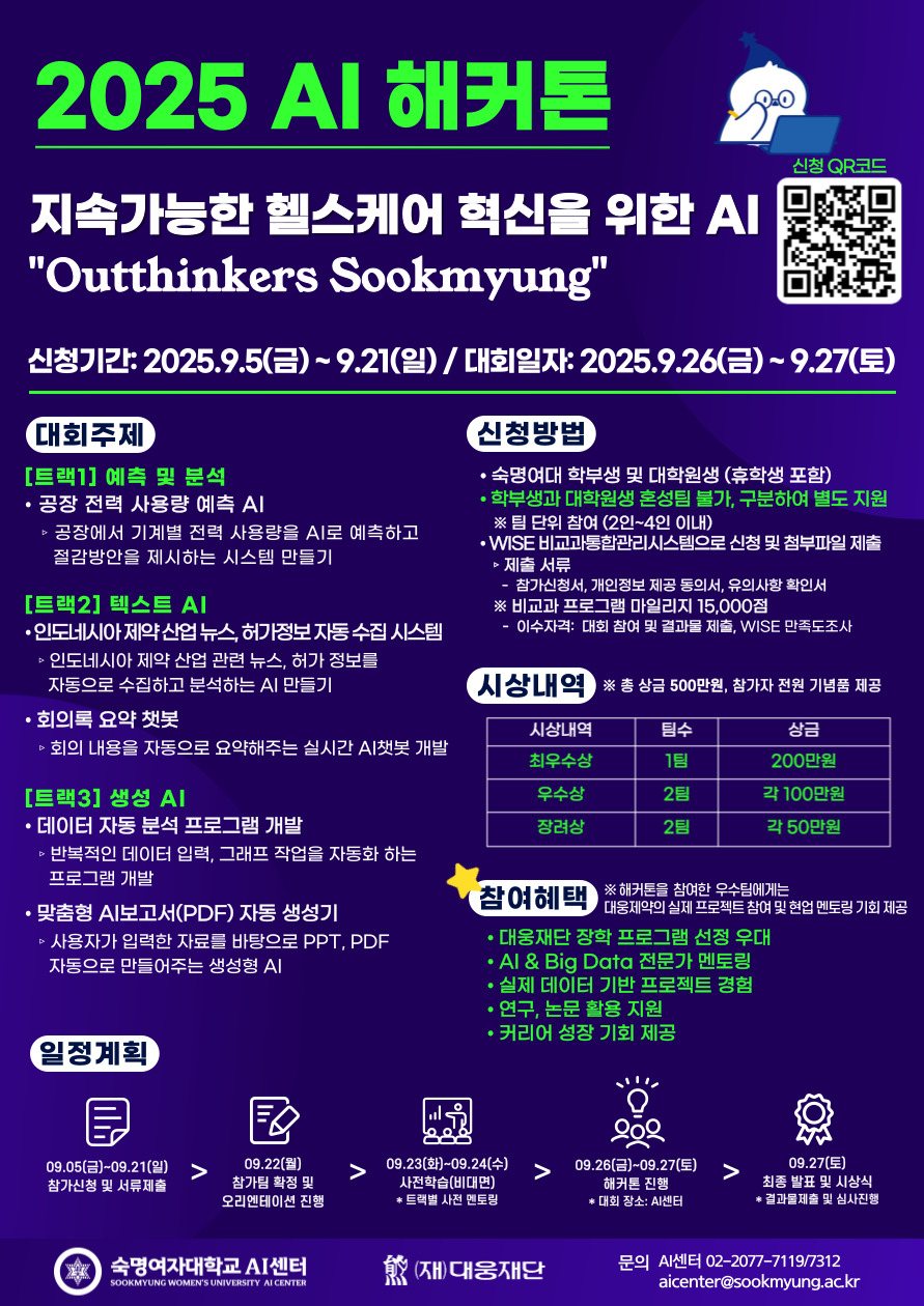 1. 사업명: [AI센터x대웅재단] "지속가능한 헬스케어 혁신을 위한 AI: Outthinkers Sookmyung"