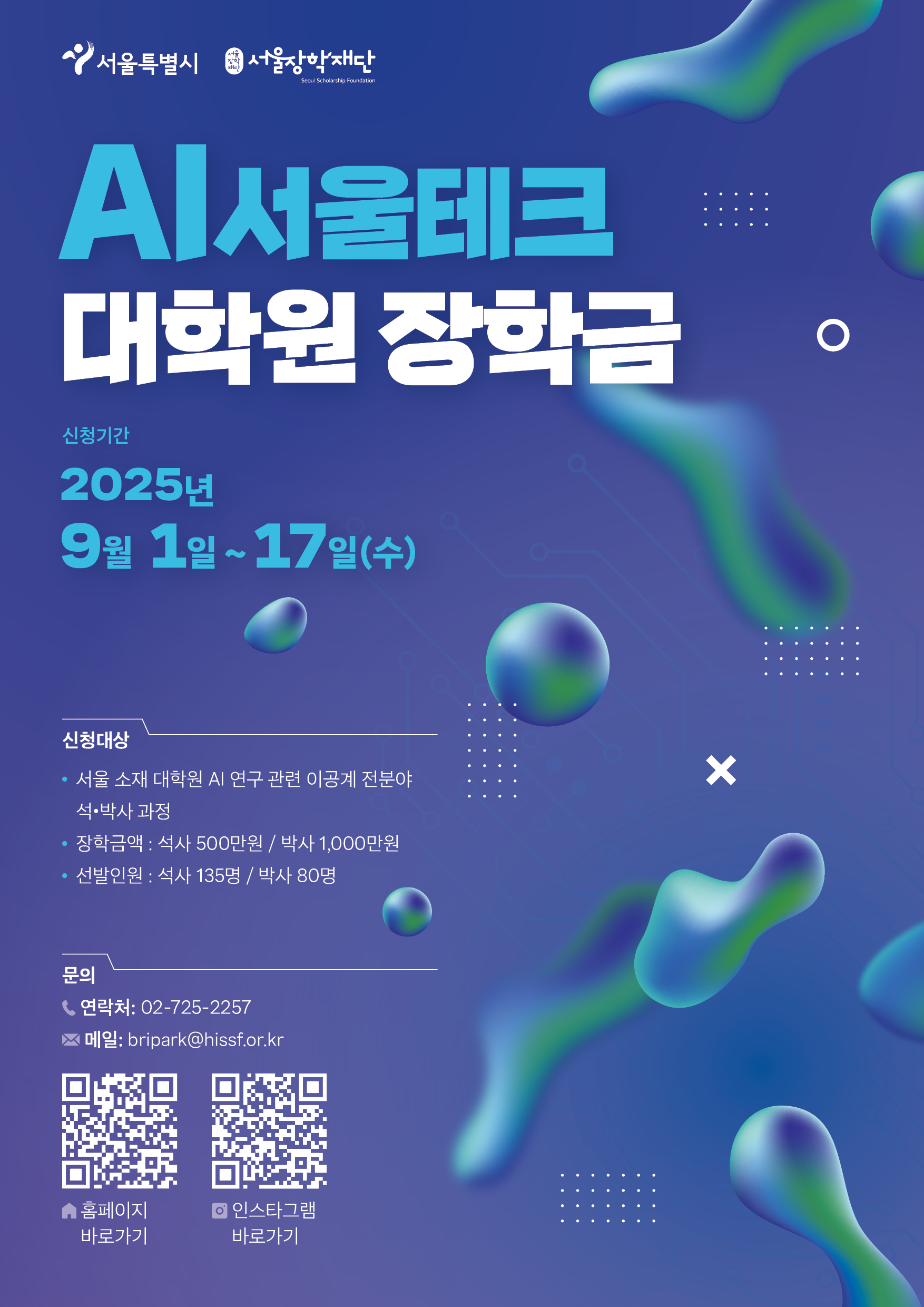 [대학원]2025년 2학기 AI 서울테크 장학금 선발 신청 안내 N
